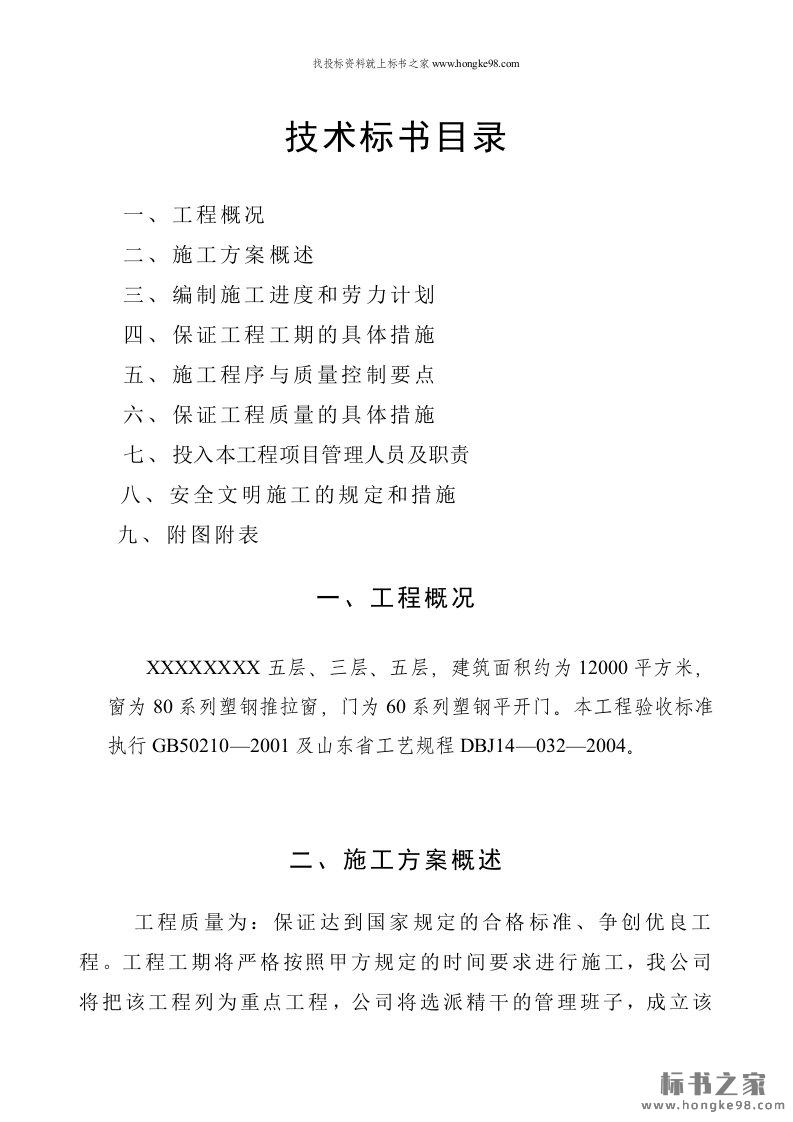 标题:铝合金门窗投标书技术方案(14页)