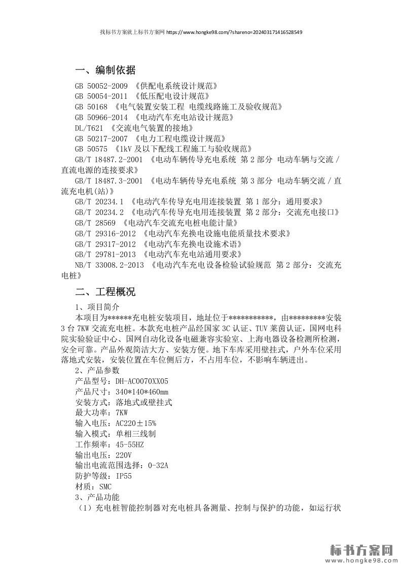 标题:汽车充电桩项目施工组织方案(7页)