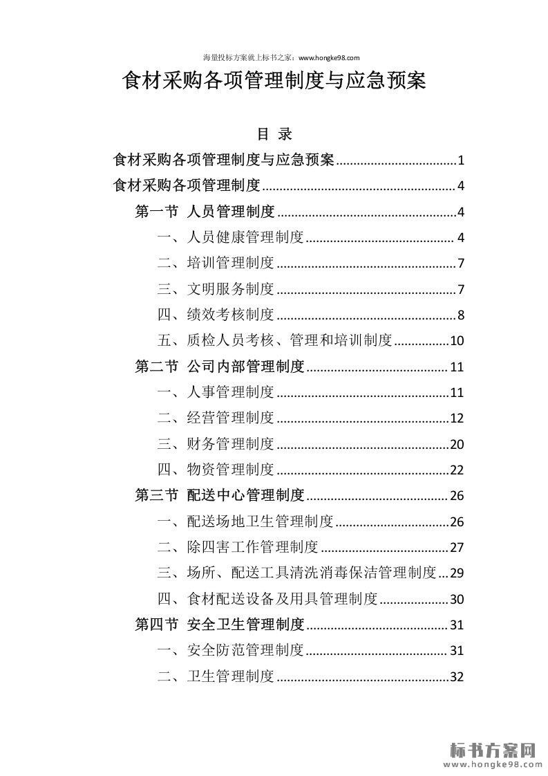 标题:食材采购各项管理制度与应急预案(130页)