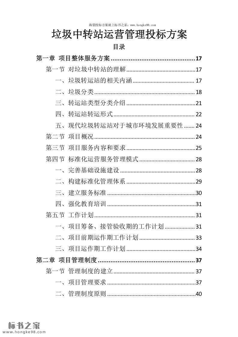 标题:垃圾中转站运营管理投标方案(407页)