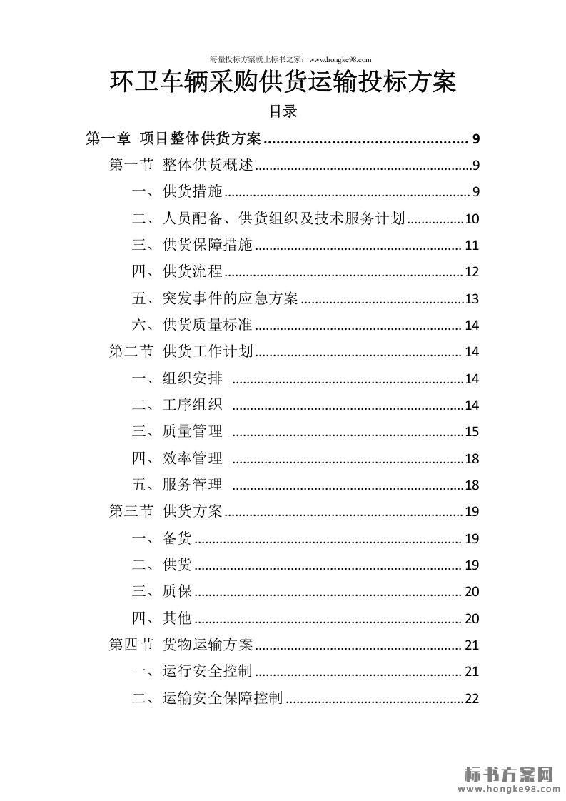 标题:环卫车辆采购供货运输投标方案(169页)