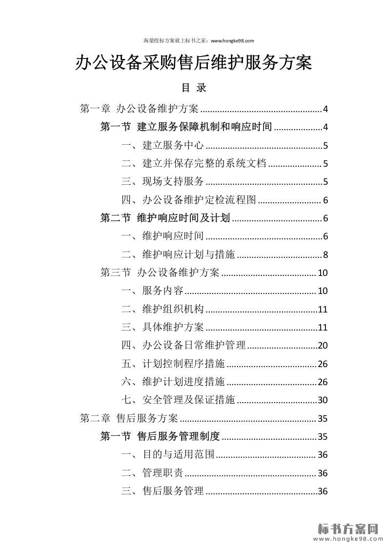 标题:办公设备采购售后维护维保服务方案(124页)