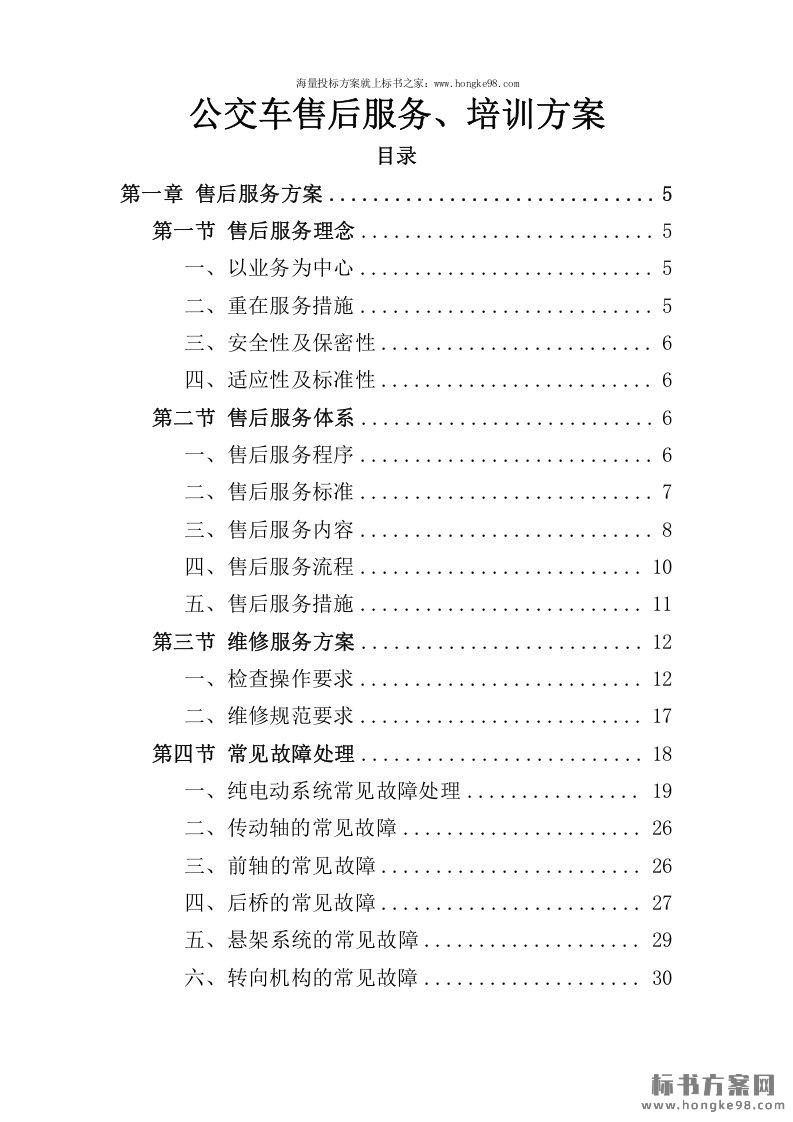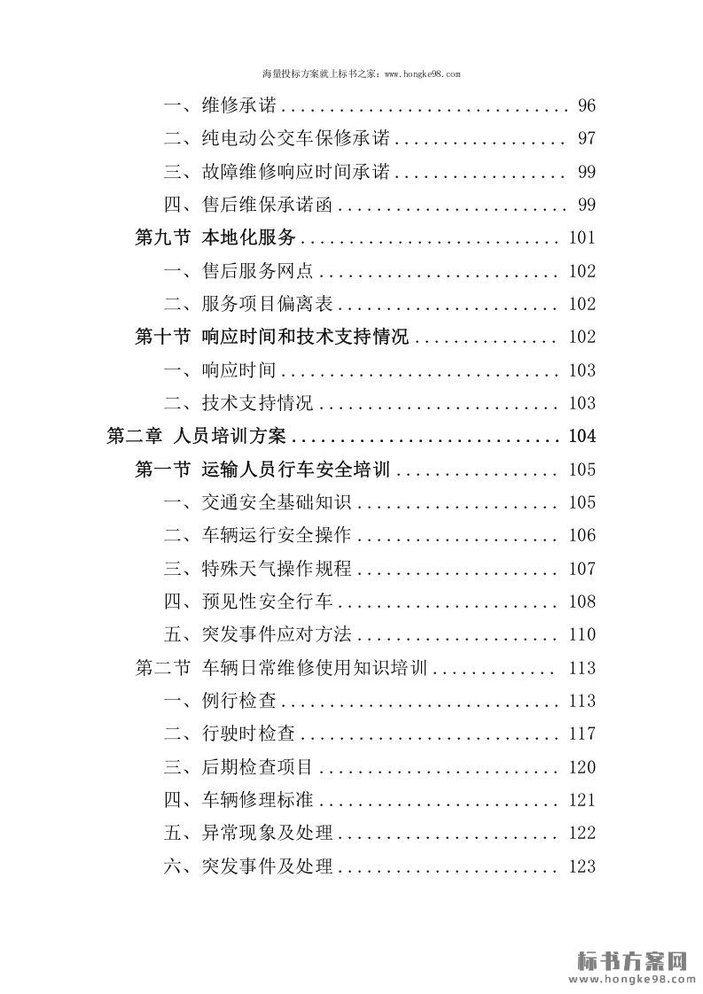 标题:公交车售后服务、培训方案(130页)