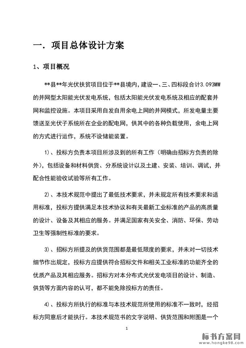 标题:光伏发电扶贫项目技术投标方案(85页)