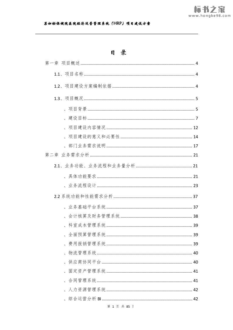 标题:妇幼保健院综合运营管理系统(HRP)项目方案(85页)