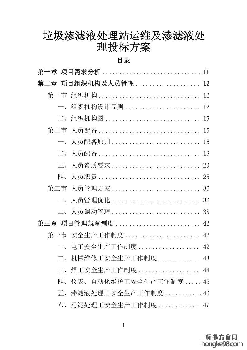 标题:垃圾渗滤液处理站运维及渗滤液处理投标方案(450页)