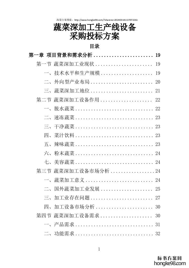 标题:蔬菜深加工生产线设备采购投标方案(352页)