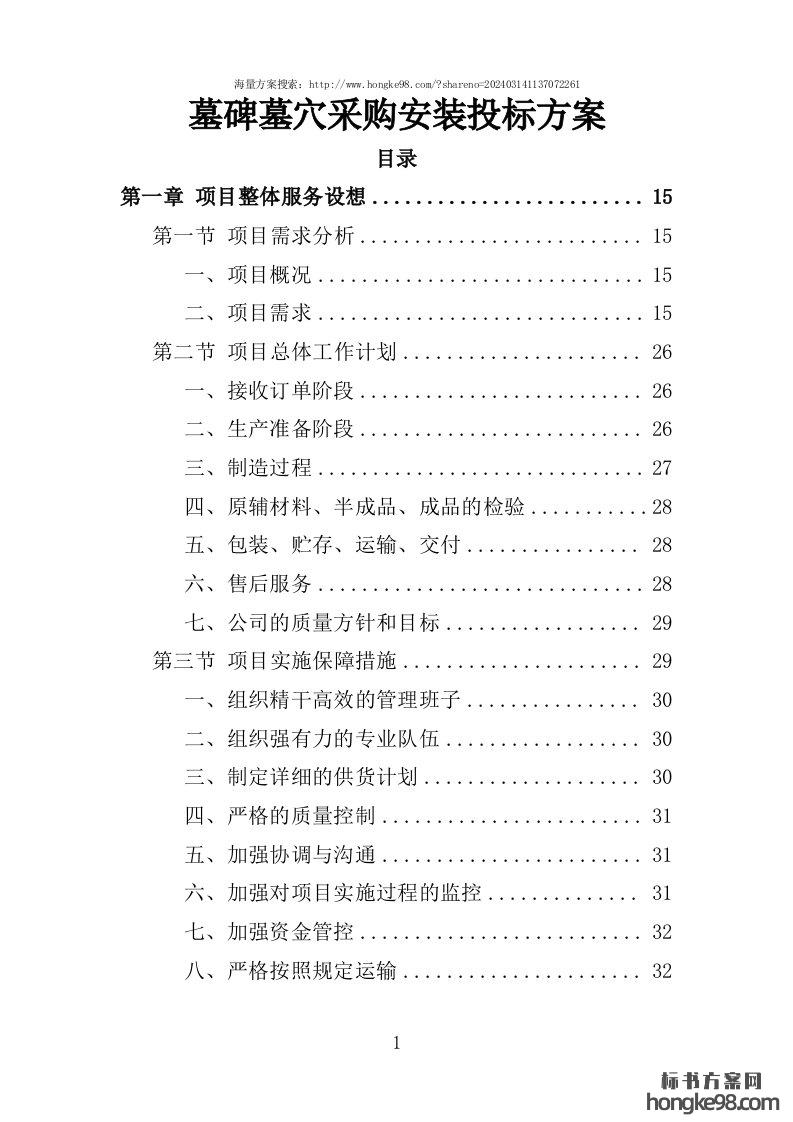 标题:墓碑墓穴采购安装投标方案(361页)