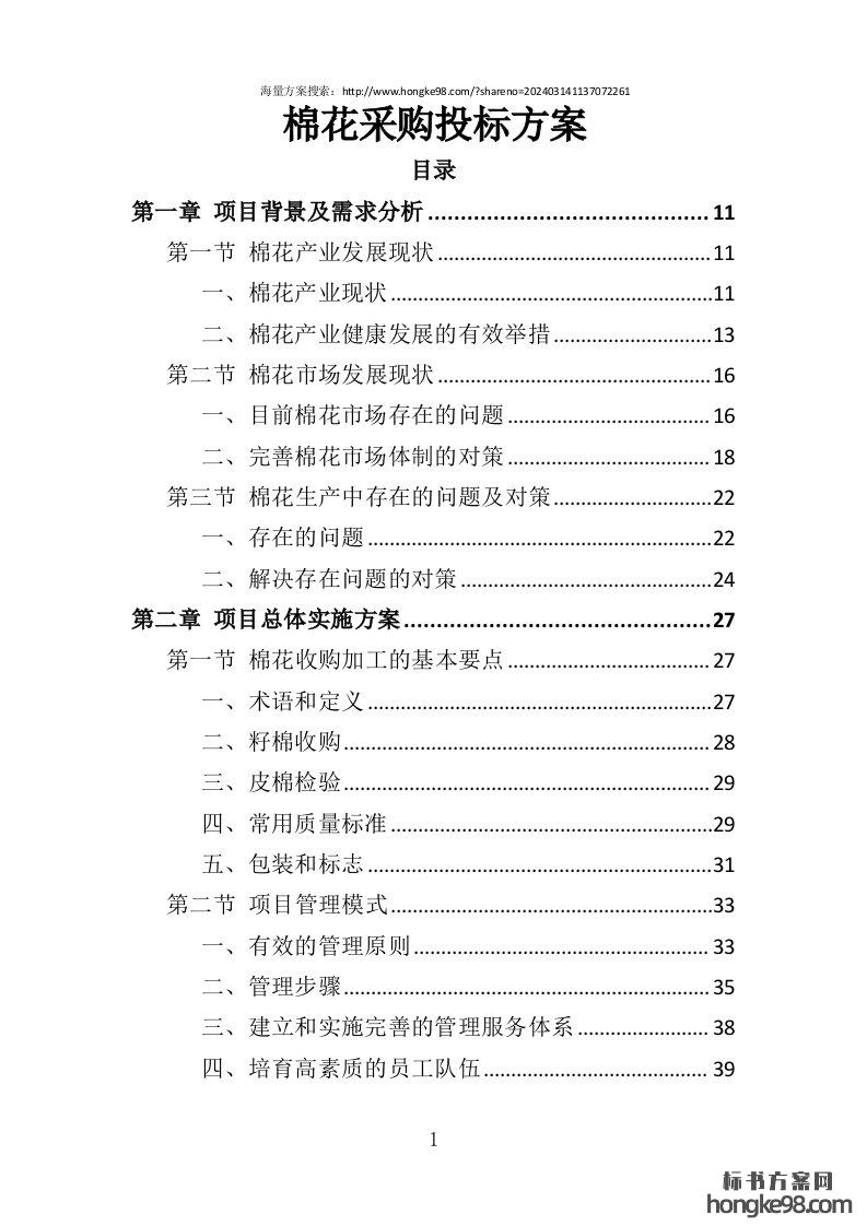 标题:棉花采购投标方案(技术标)(383页)