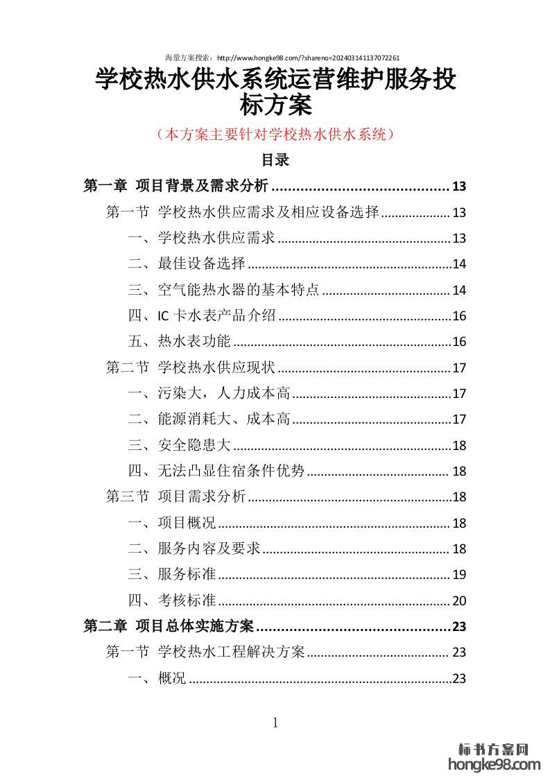 标题:学校(校园)热水供水系统运营维护服务投标方案(360页)