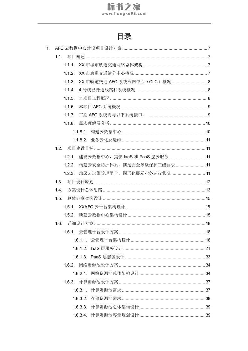 标题:AFC云数据中心项目技术方案及实施、培训方案(134页)