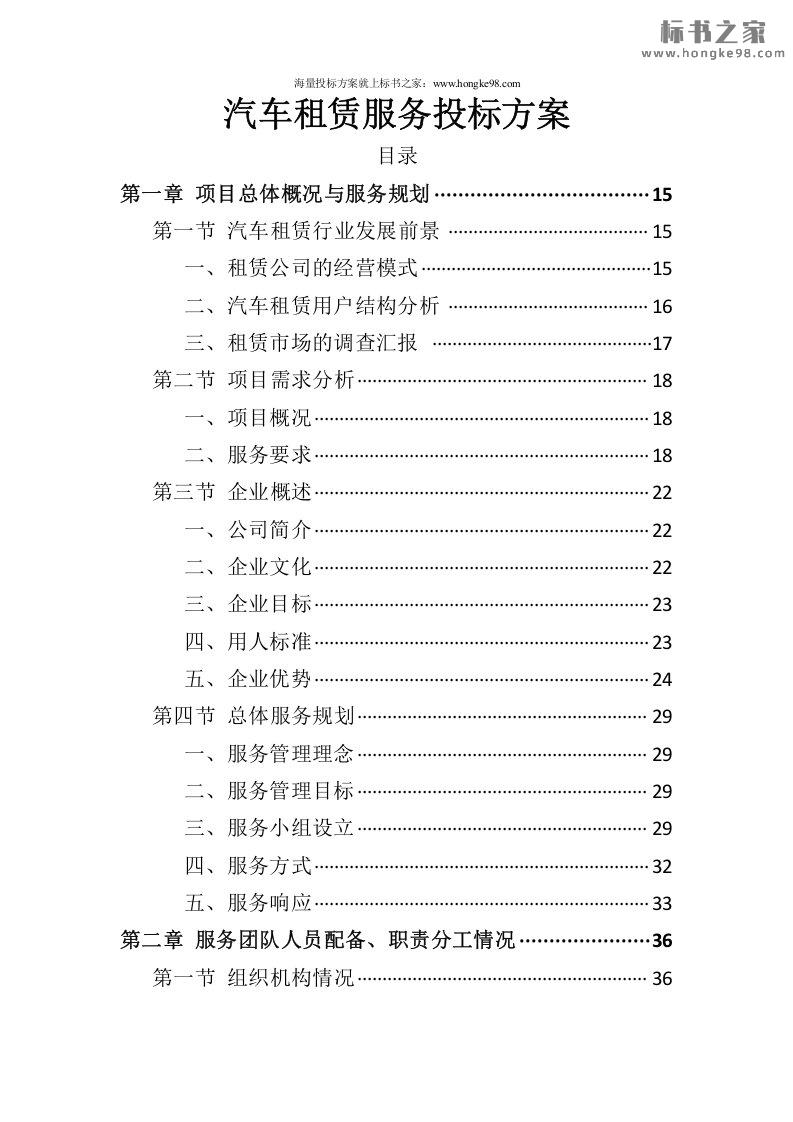 标题:汽车租赁服务投标方案(407页)