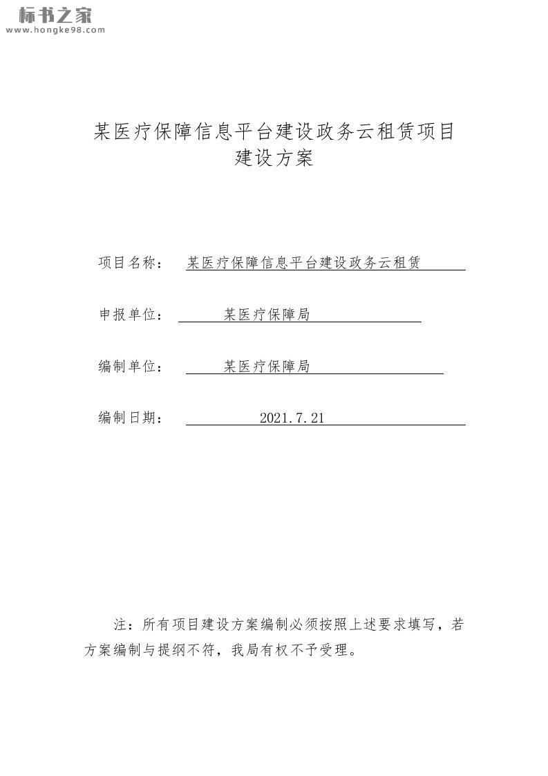标题:医疗保障信息平台建设政务云租赁项目方案(75页)