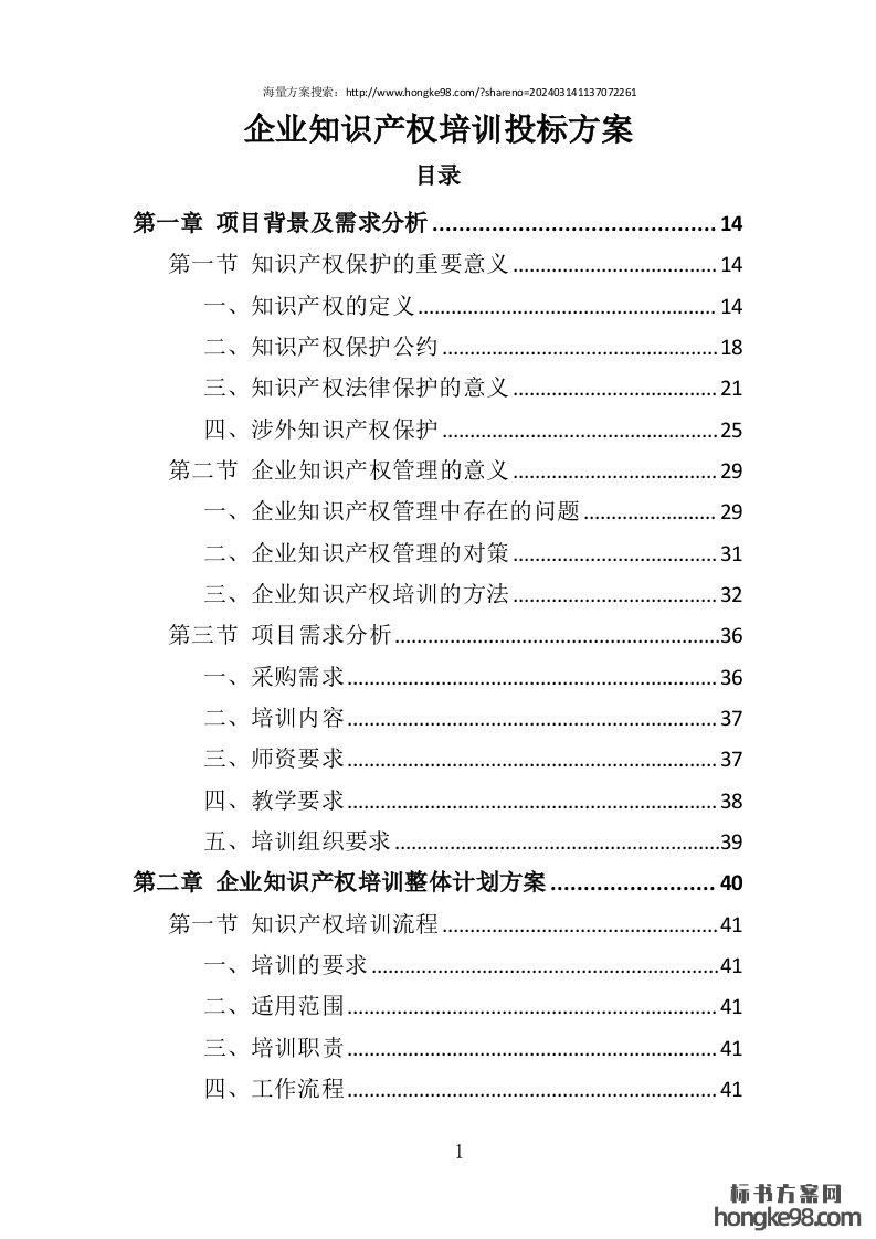 标题:企业知识产权培训投标方案(420页)