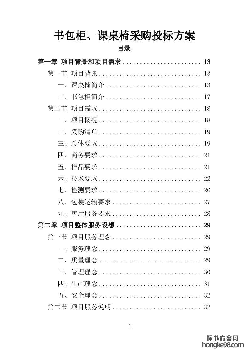 标题:校园书包柜、课 桌椅采购投标方案361页