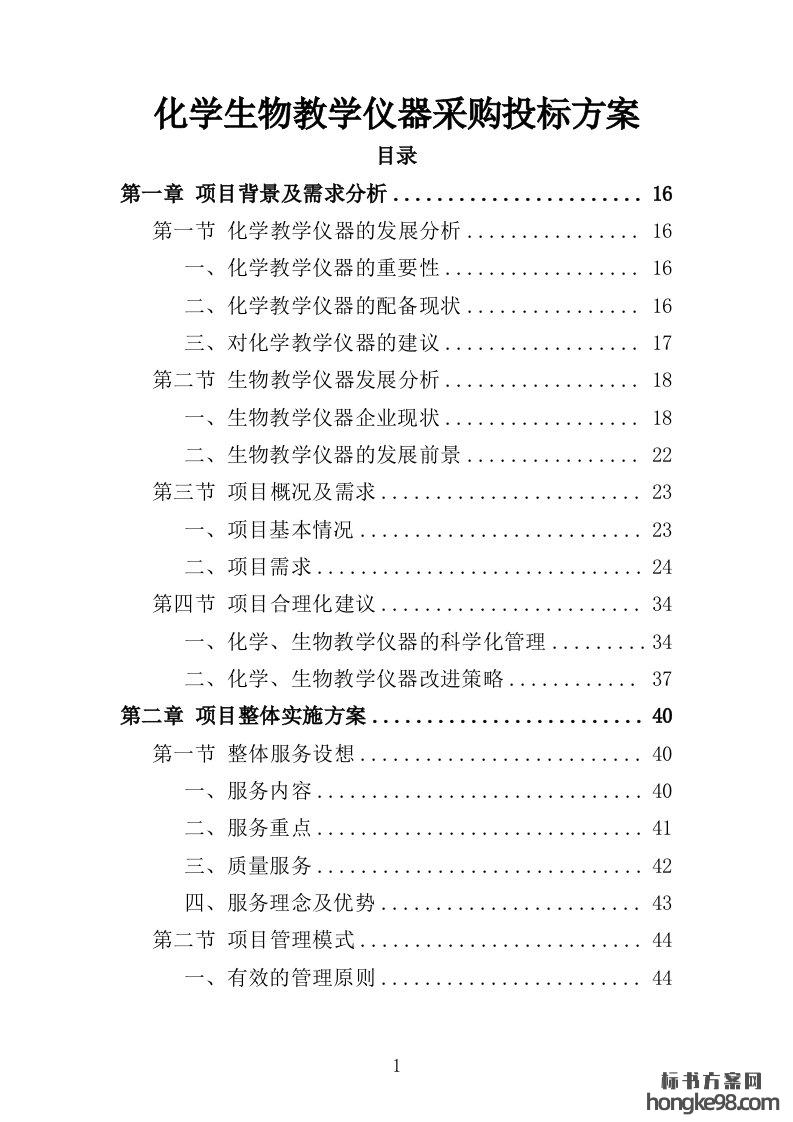 标题:化学生物教学仪器采购投标方案434页
