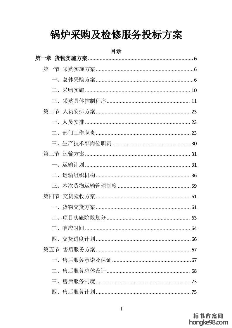 标题:锅炉采购及检修服务投标方案285页