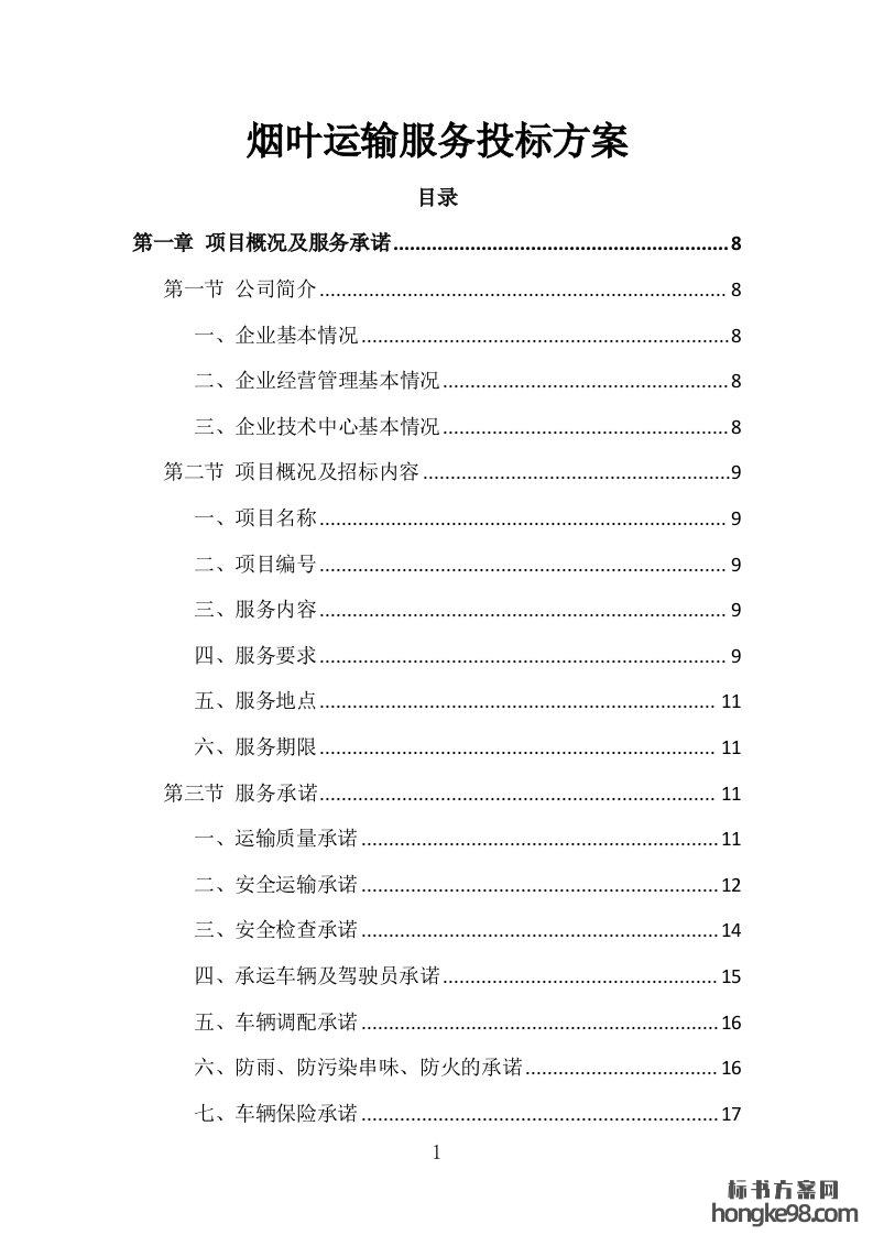标题:烟叶运输服务投标方案161页