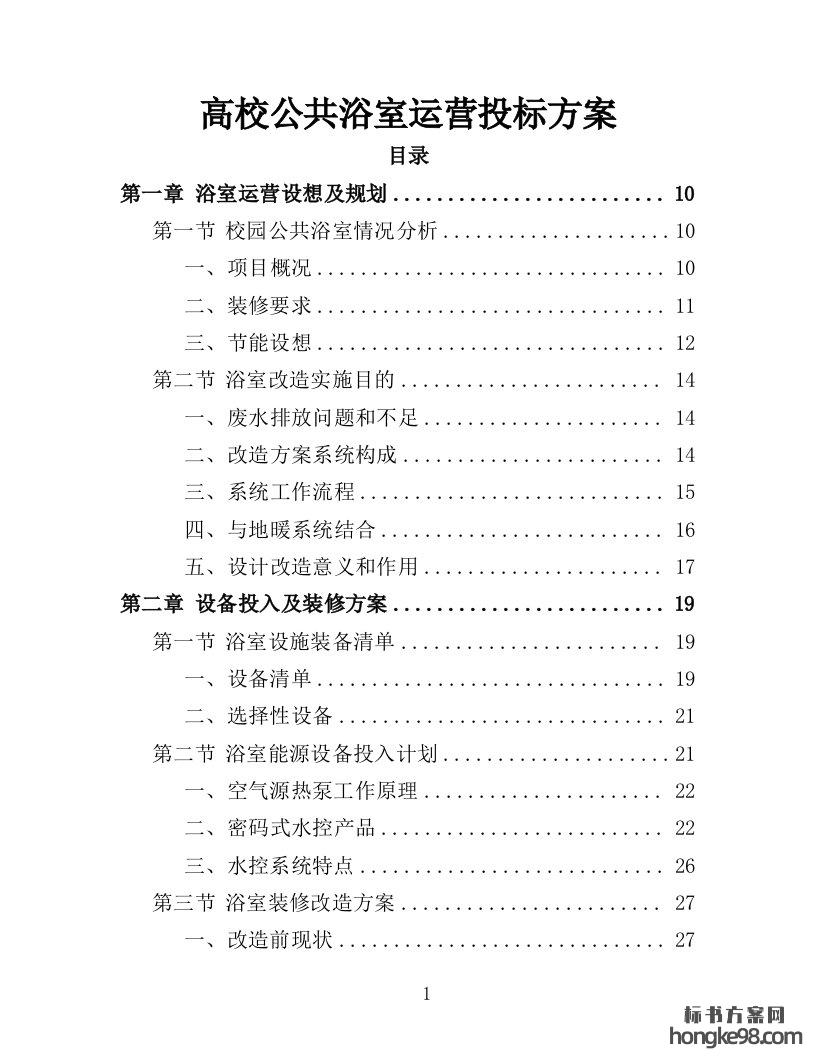 标题:高校公共浴室运营投标方案205页