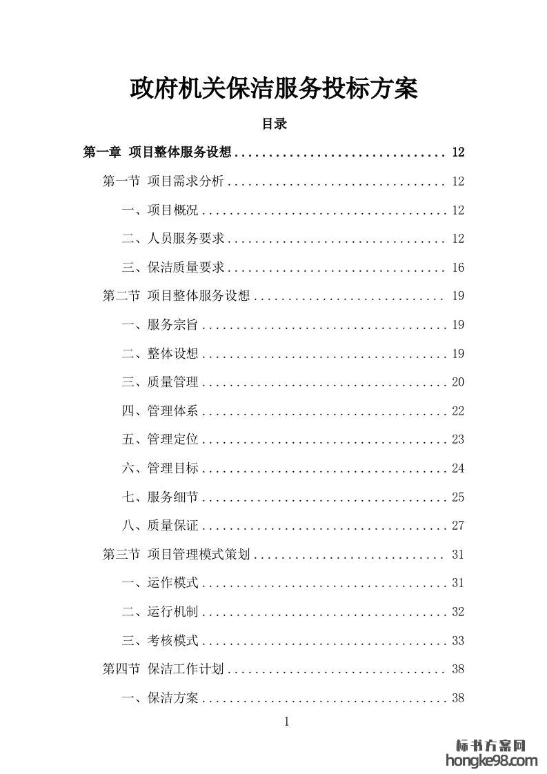 标题:政府机关单位保洁服务投标方案312页
