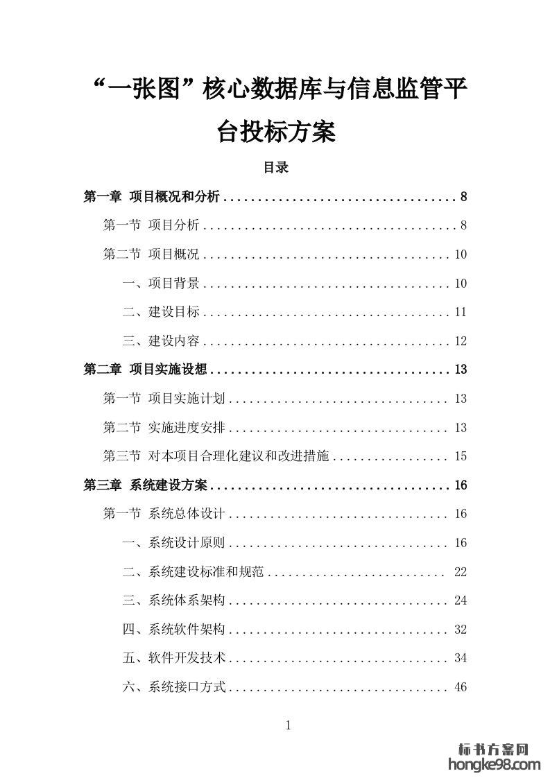 标题:“一张图”核心数据库与信息监管平台投标方案325页
