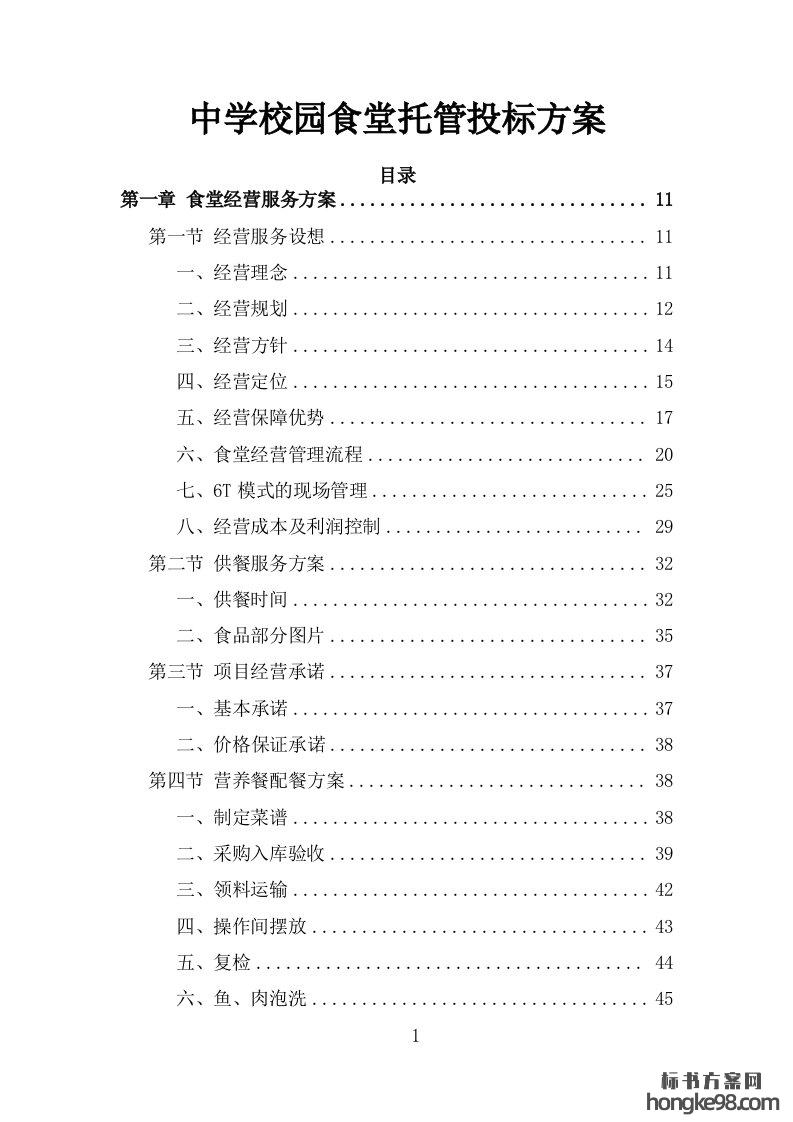 标题:中学校园食堂餐饮托管经营服务投标方案319页
