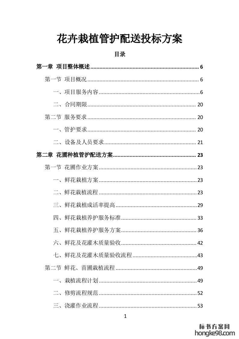 标题:花卉栽植管护配送投标方案203页
