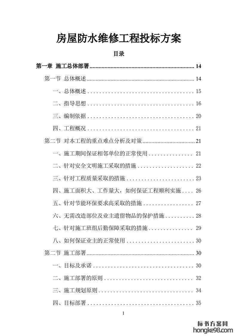 标题:房屋防水维修工程投标方案 402页