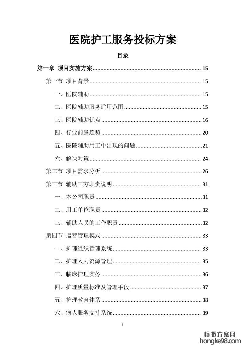 标题:医院护工服务投标方案364页