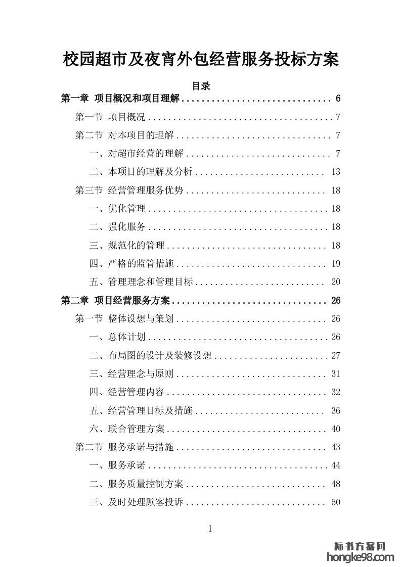 标题:校园超市及夜宵外包经营服务投标方案365页