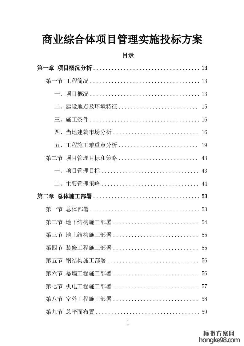 标题:商业综合体项目管理实施投标方案472页