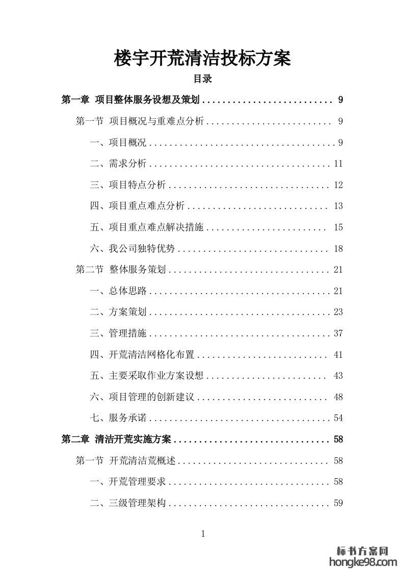 标题:楼宇开荒清洁投标方案335页