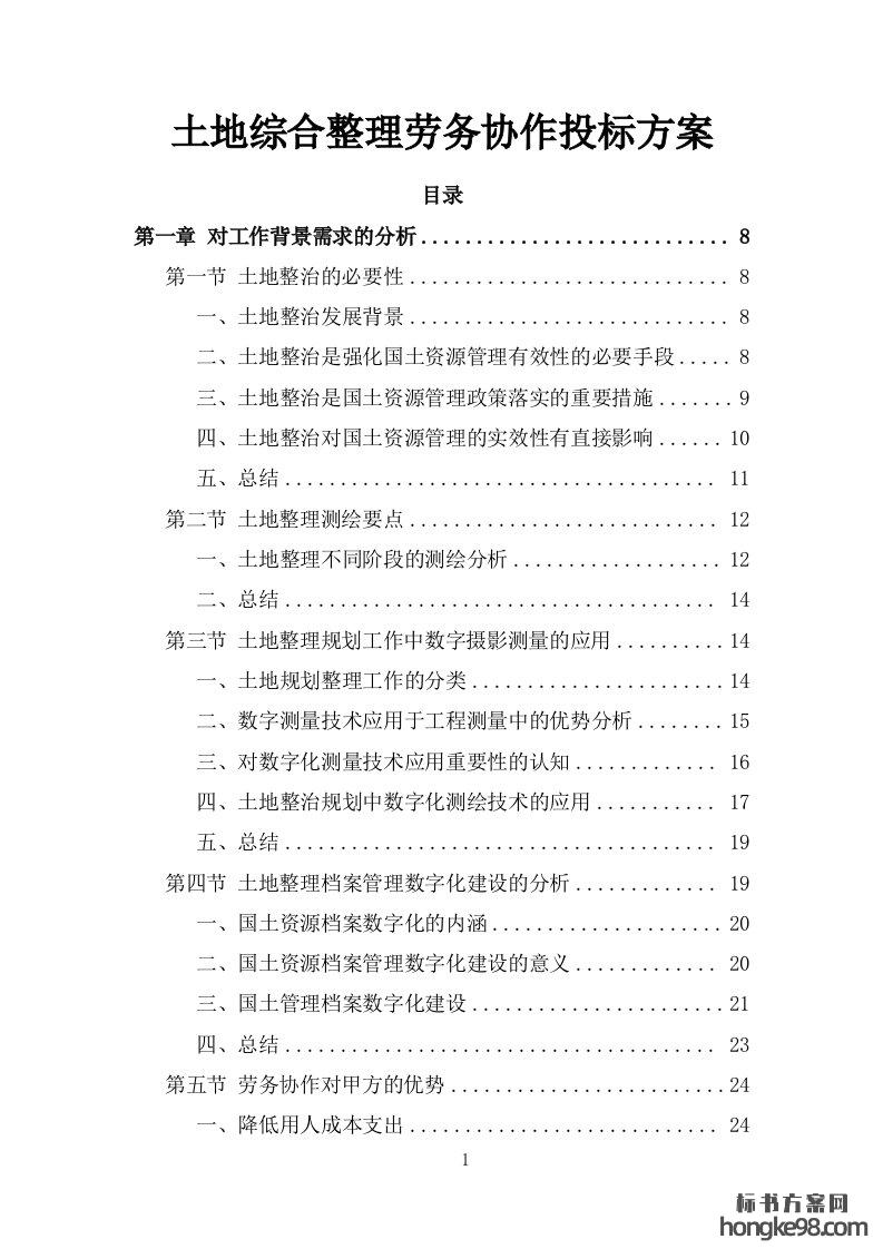 标题:土地综合整理整治劳务协作投标方案227页
