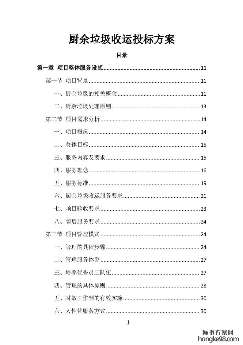 标题:厨余垃圾收运投标方案306页