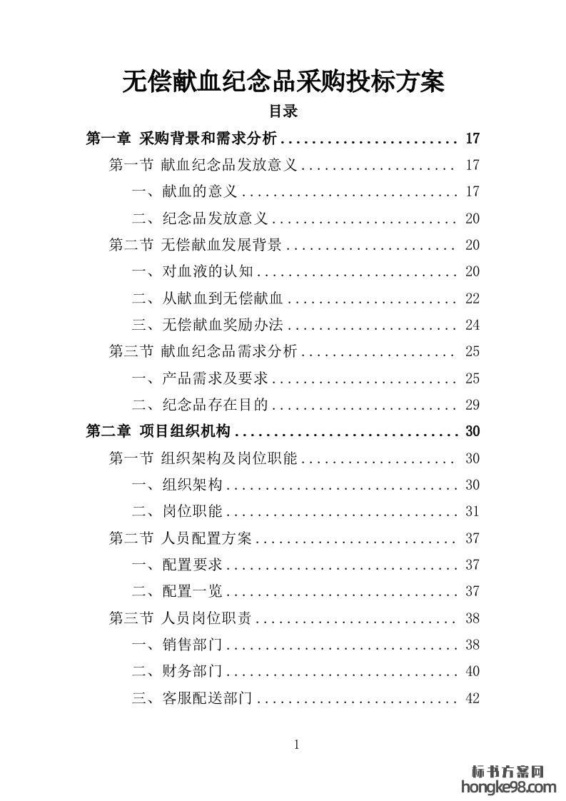 标题:无偿献血纪念品采购投标方案351页