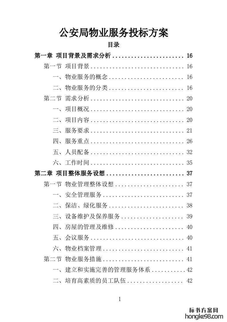 标题:公安局物业服务投标方案365页
