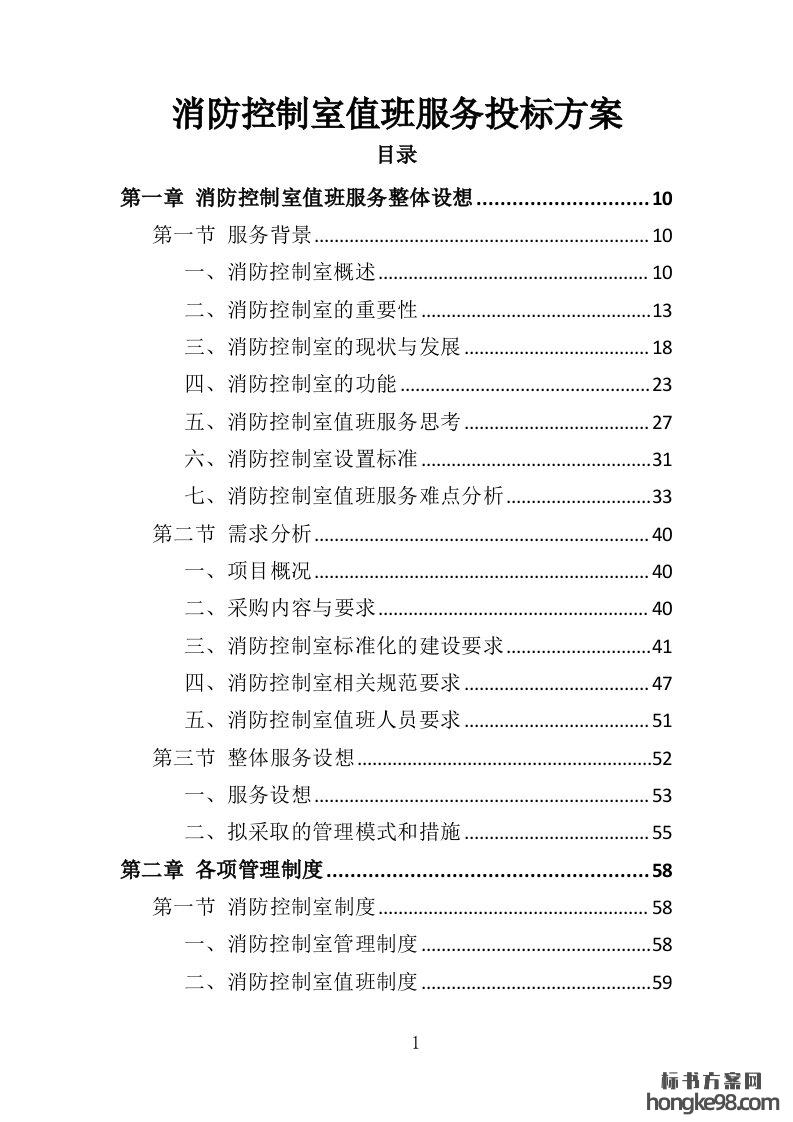 标题:消防控制室值班服务投标方案327页
