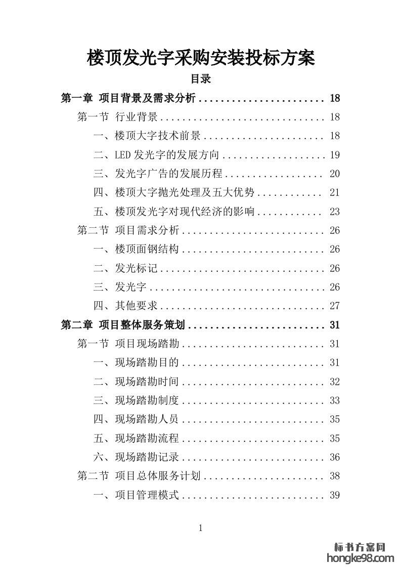标题:楼顶发光字采购安装投标方案409页