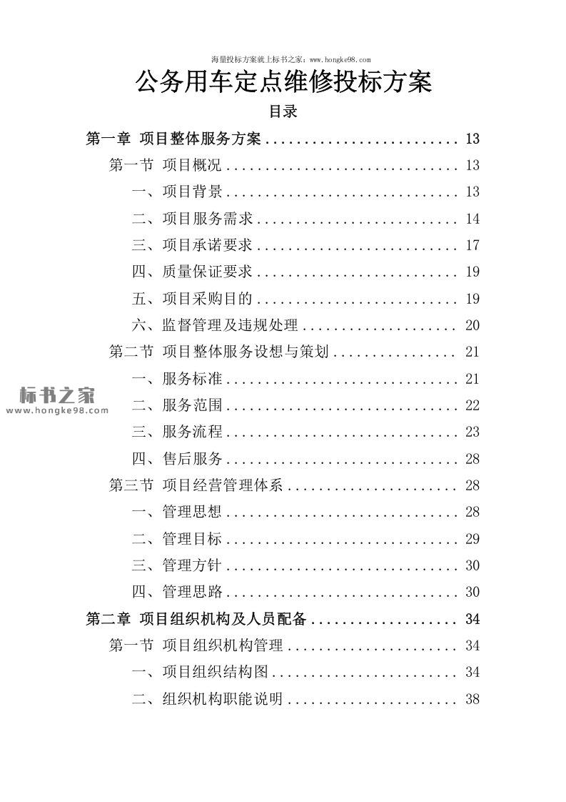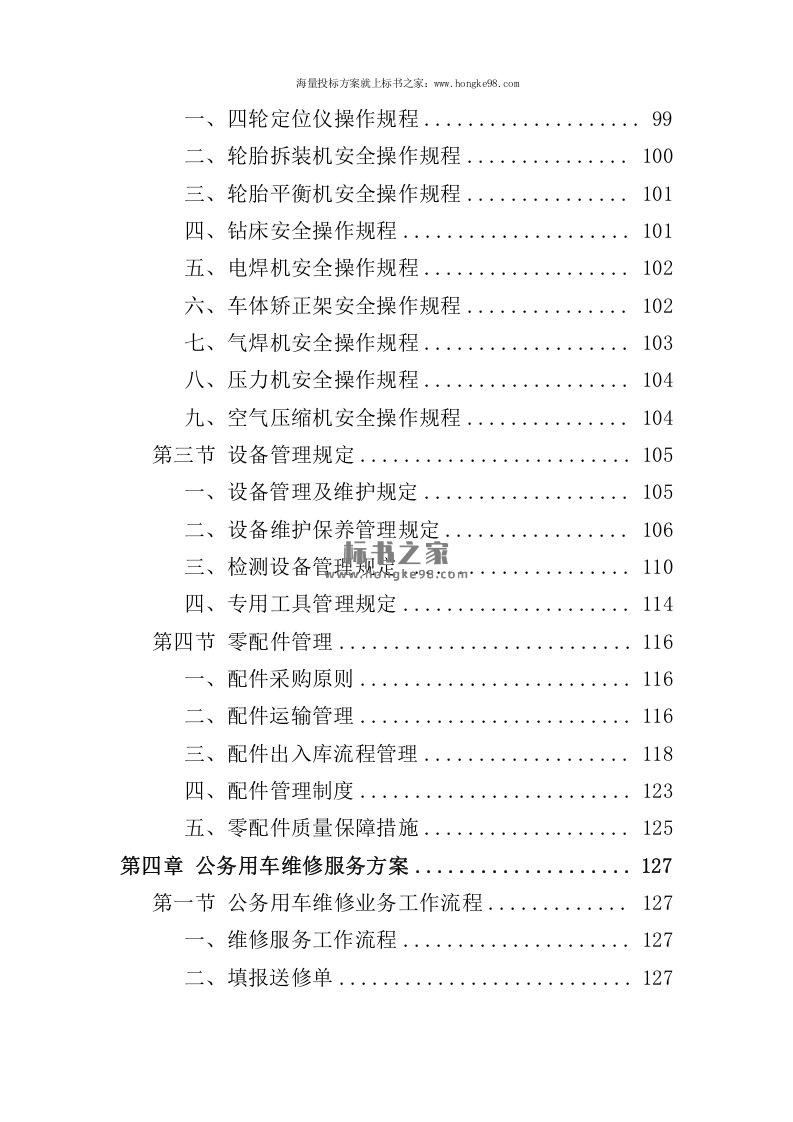 标题:公务用车定点维修服务投标方案(351页)