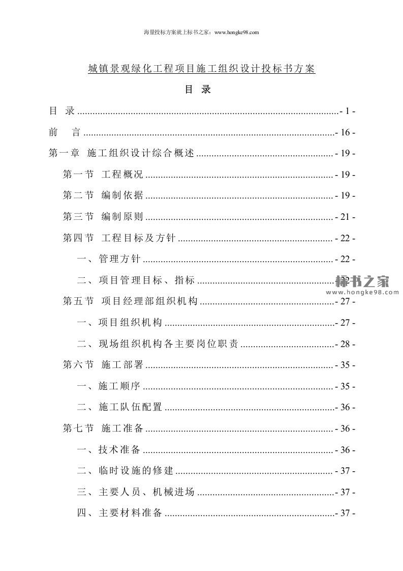 标题:城镇景观绿化工程项目施工组织设计投标书方案(999页)