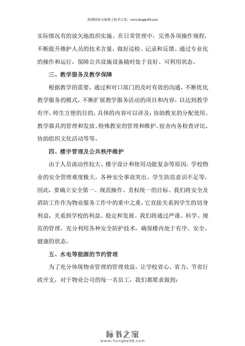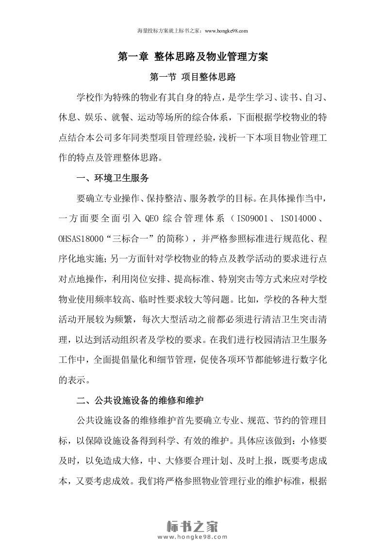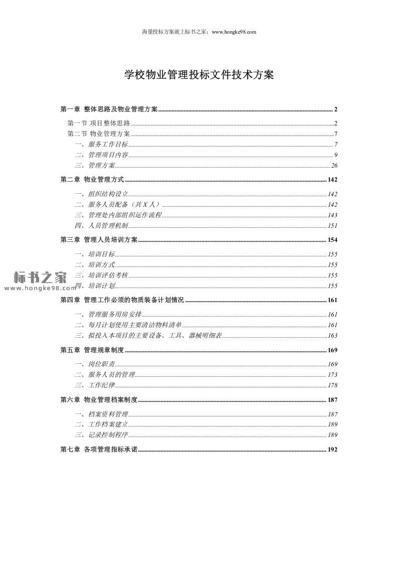 标题:学校(校园)物业管理投标文件技术方案(186页)