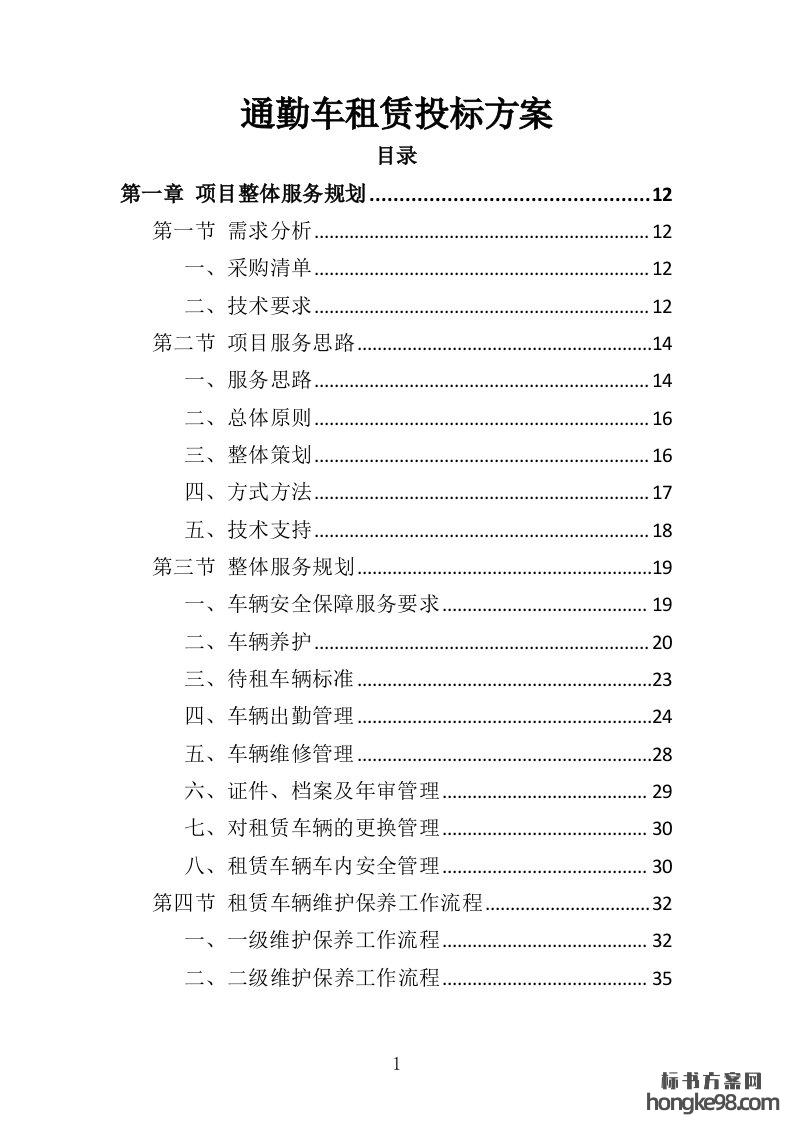 标题:通勤车租赁投标方案330页