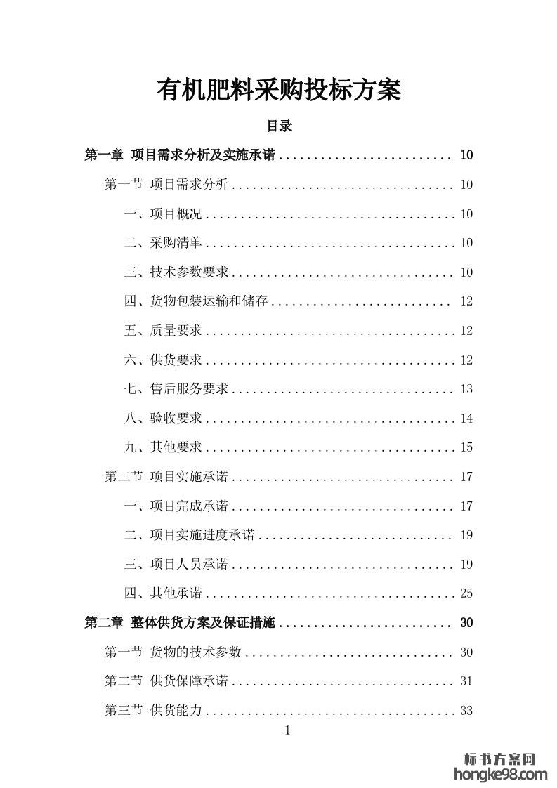 标题:有机肥 料采购投标方案349页