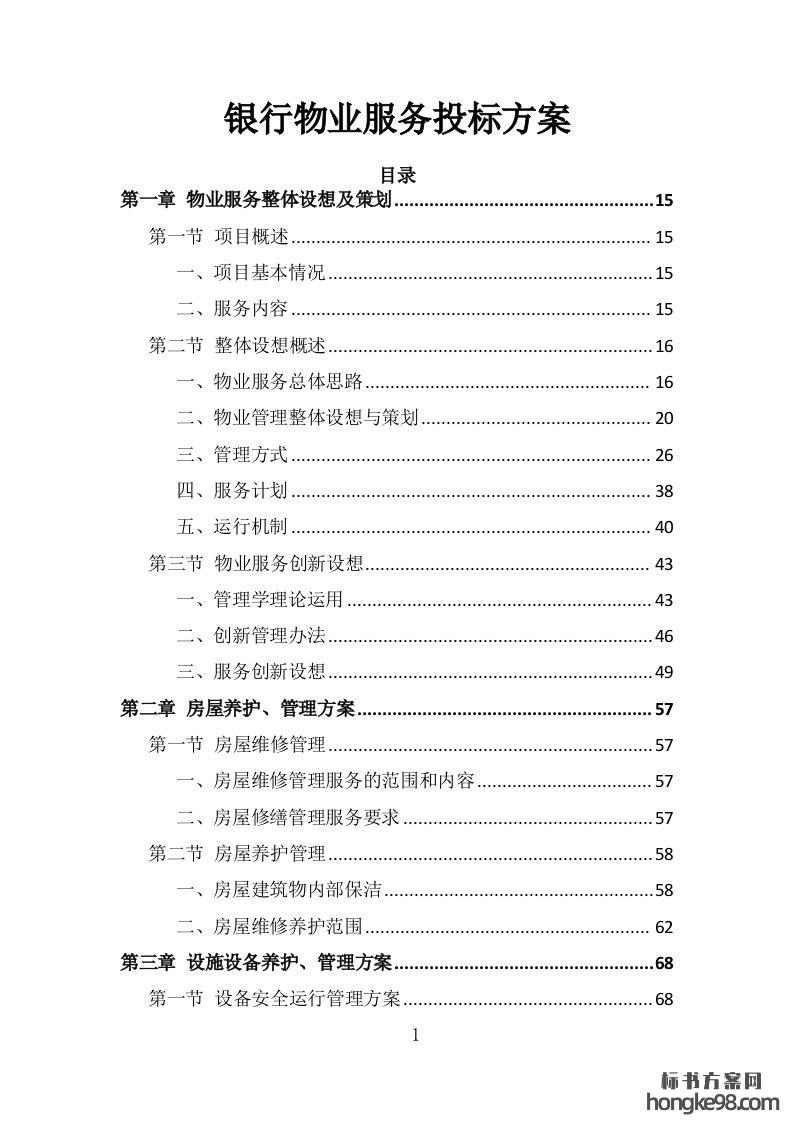 标题:银行物业服务投标方案355页