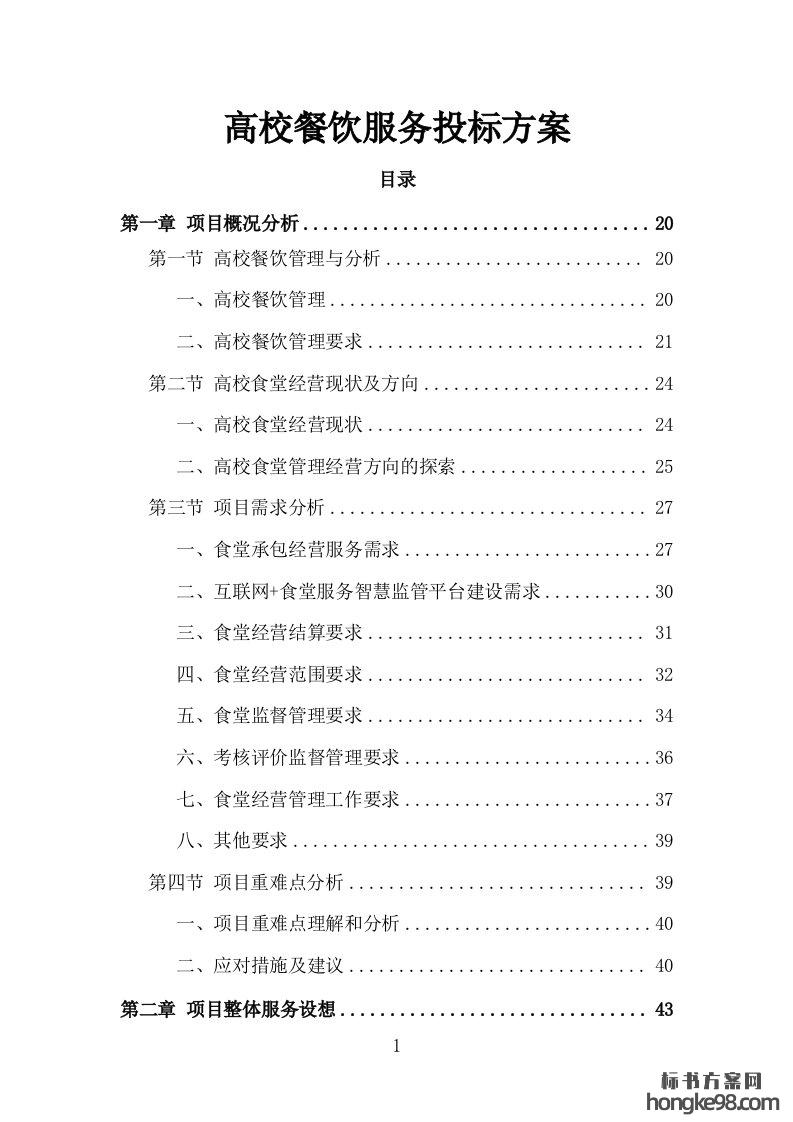 标题:高校(校园)餐饮服务投标方案408页