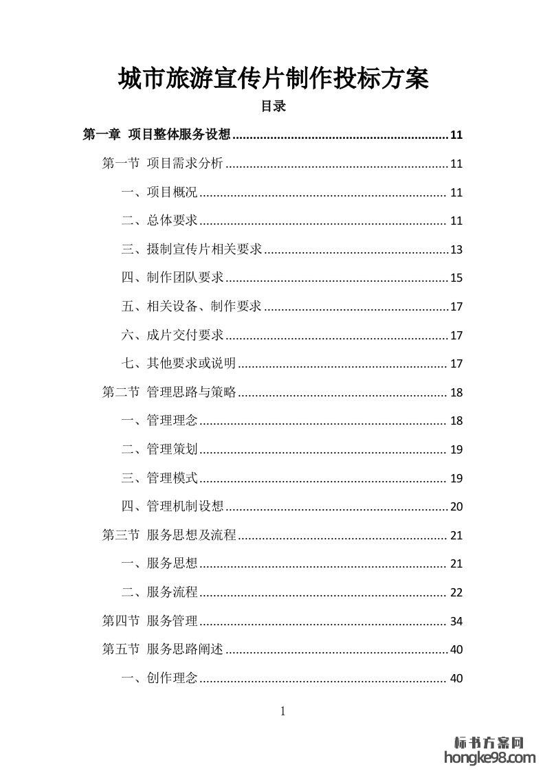 标题:城市旅游宣传片拍摄制作投标方案333页