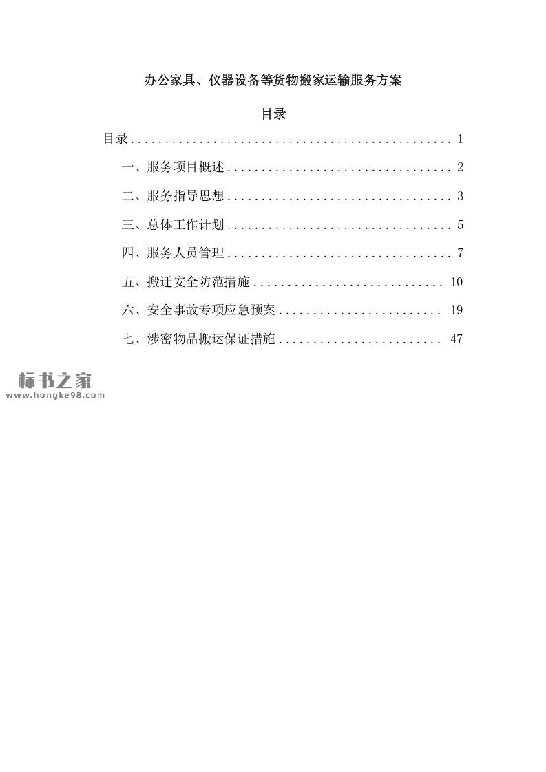 标题:办公家具、仪器设备等货物搬家运输服务方案(46页)
