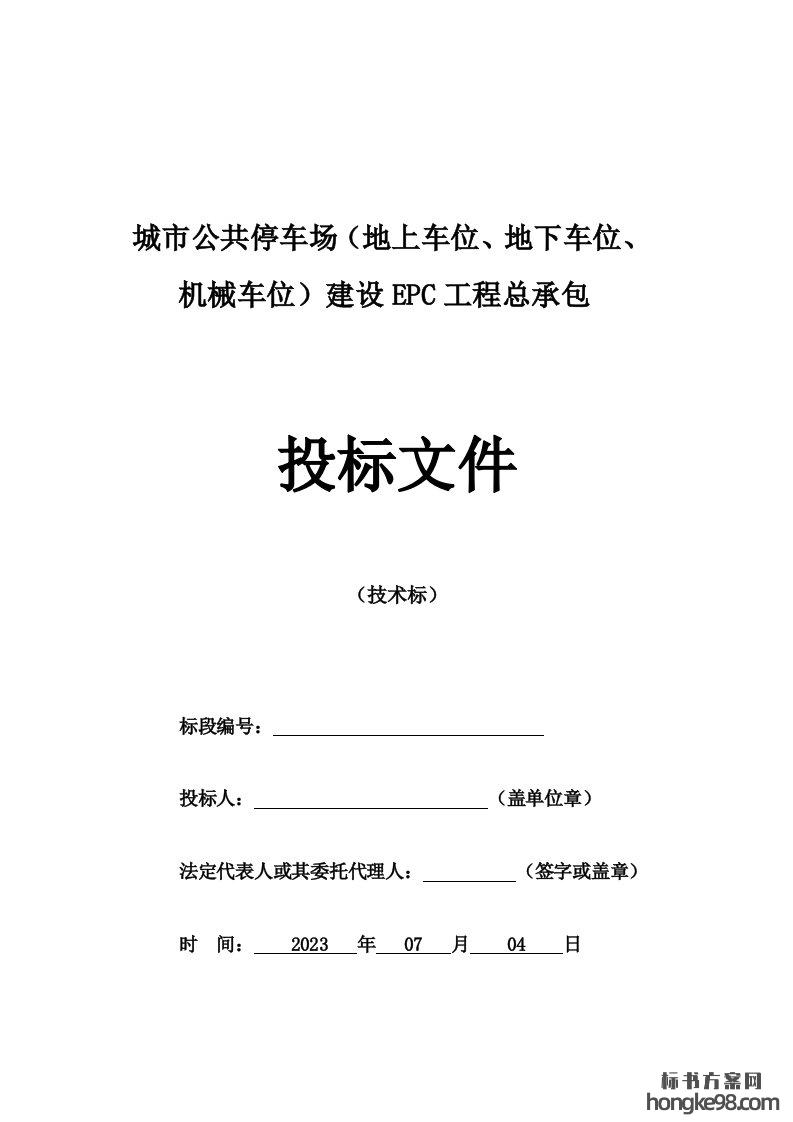 标题:城市公共停车场(地上车位、地下车位、机械车位)建设EPC工程总承包投标方案(432页)