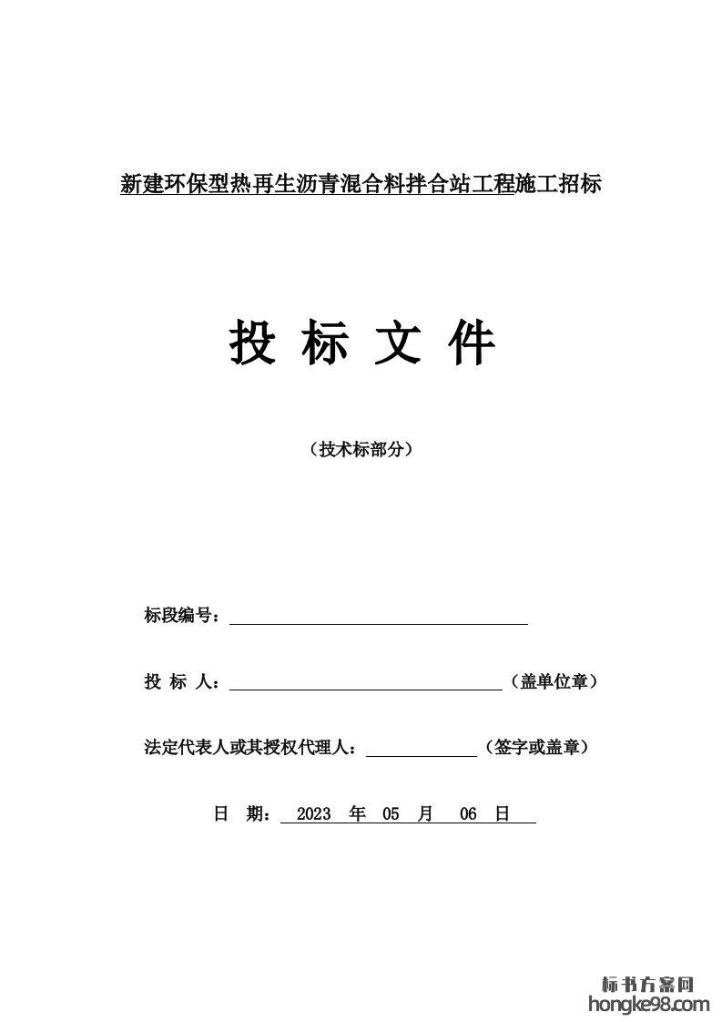 标题:新建环保型热再生沥青混合料拌合站工程投标方案(217页)