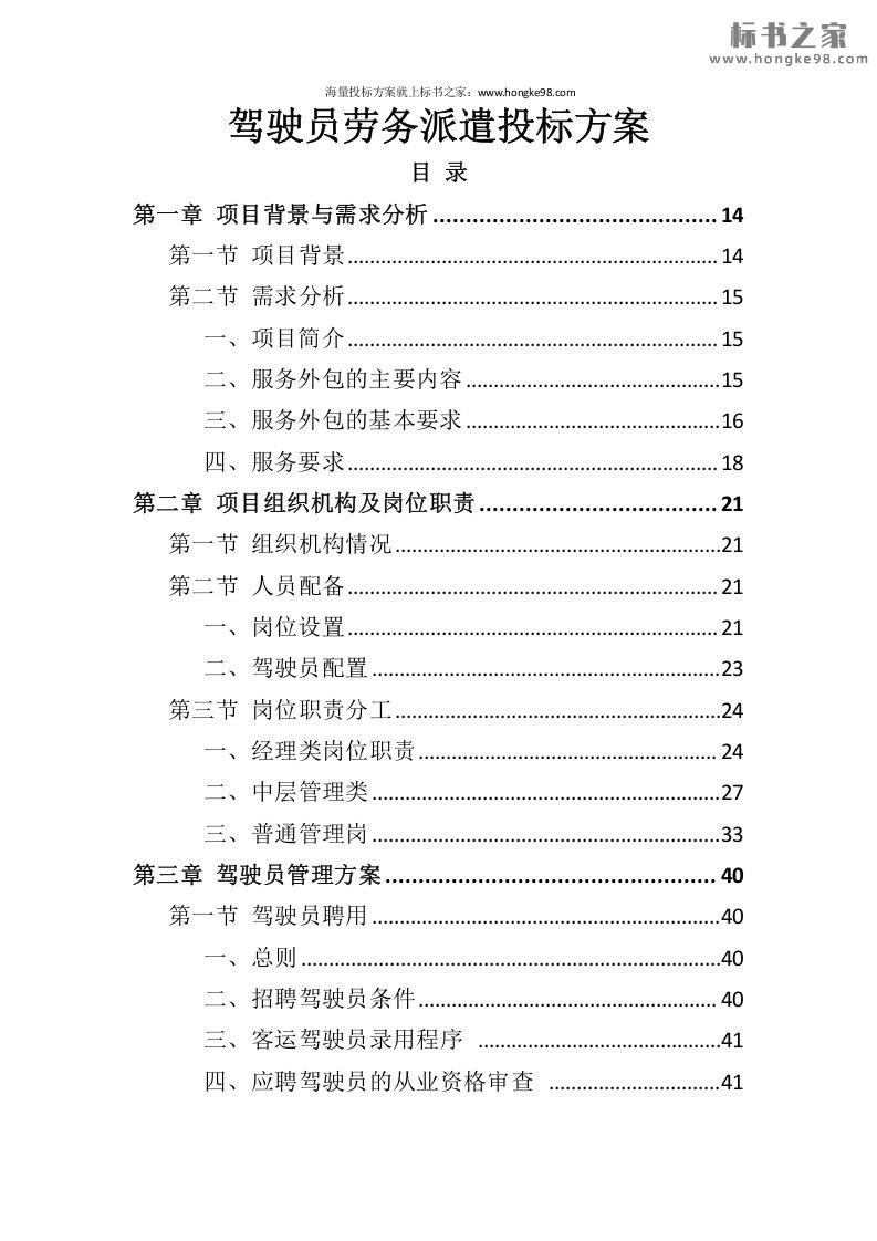 标题:驾驶员劳务派遣投标方案(430页)